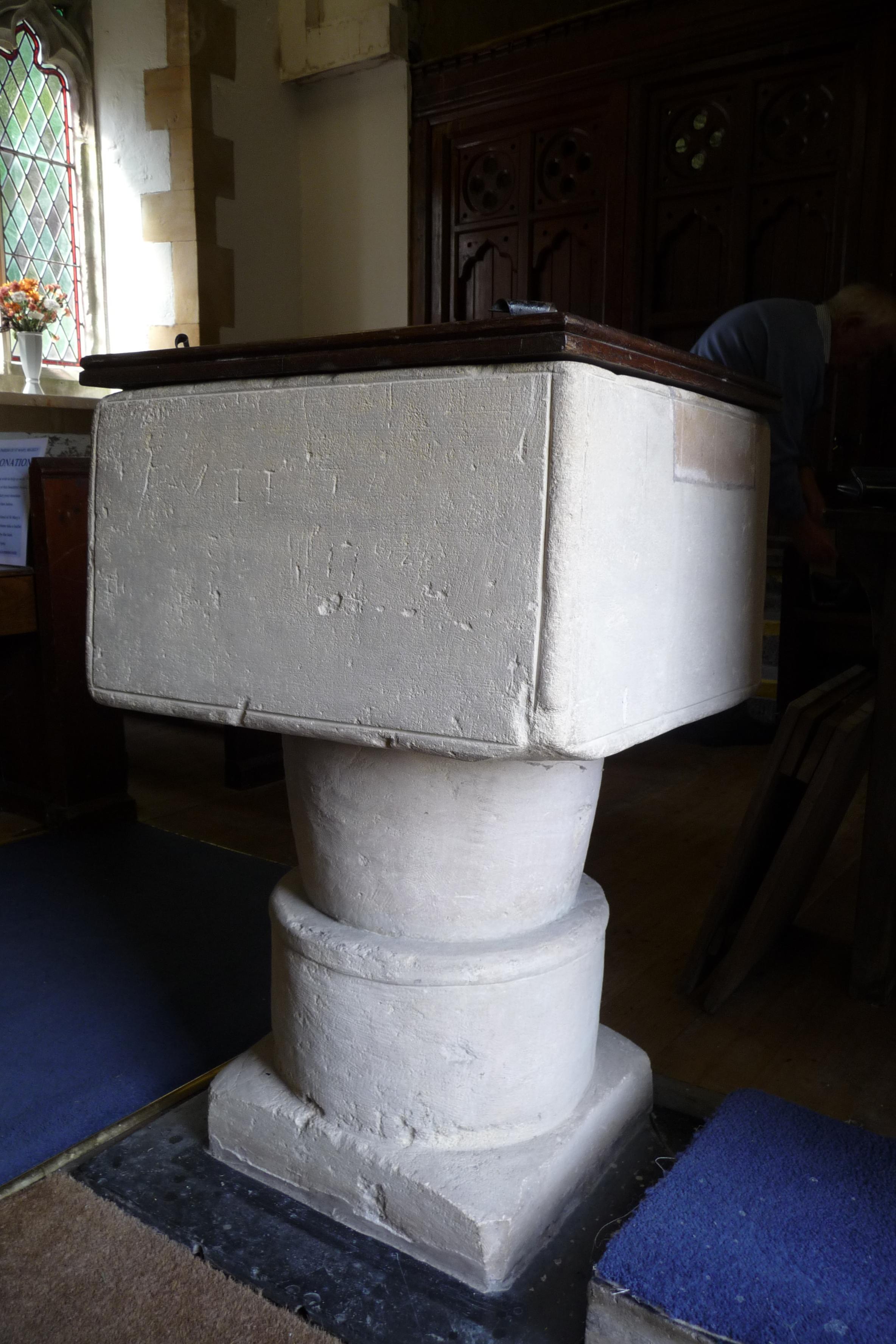 Amongst the features of the church are the medieval font, a holy water stoup and the chancel arch “apparently Norman – built of local stone”.